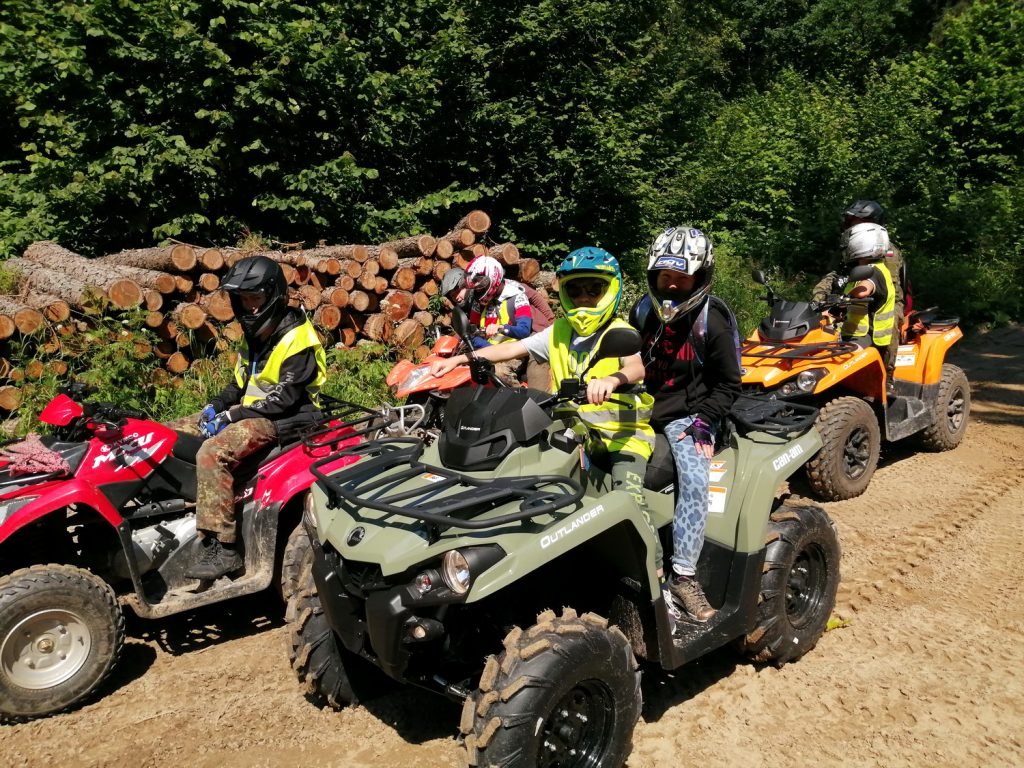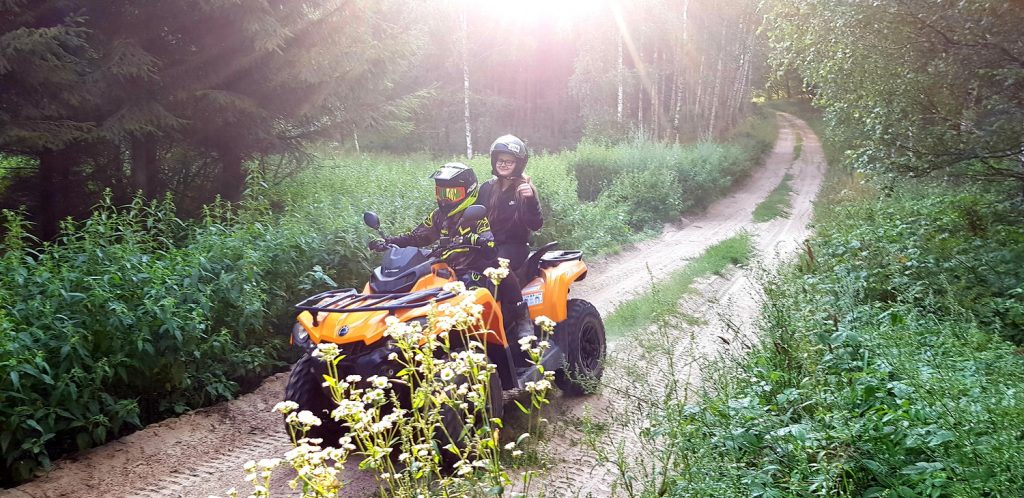 Quady czy ATV (All Terrain Vehicle) – to pojazdy, które z pewnością dostarczą nam wspaniałej zabawy i adrenaliny. Przygodę z quadami rozpoczynamy od ich stopniowego opanowania. Pierwsze jazdy z instruktorem i pod jego czujnym okiem, odbywamy po prostym terenie, następnie pokonujemy coraz większe wertepy. Jeździmy w prawdziwym terenie, nie na torze, dzięki czemu każdy wyjazd staje się terenową wyprawą off-road. Okolice ośrodka obfitują w tereny wymarzone do jazdy na tych maszynach – rozległe dzikie pola, leśne, szutrowe i piaszczyste drogi, mokradła, poprzecinane większymi i mniejszymi pagórkami lub wzniesieniami.