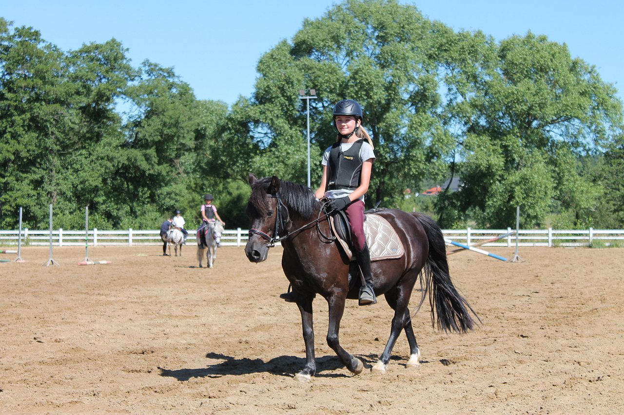 Nauka jazdy konnej odbywa się w kameralnych grupach treningowych, z podziałem na dwa stopnie zaawansowania (podział na grupy pierwszego dnia obozu - po przeprowadzeniu zajęć zapoznawczych)